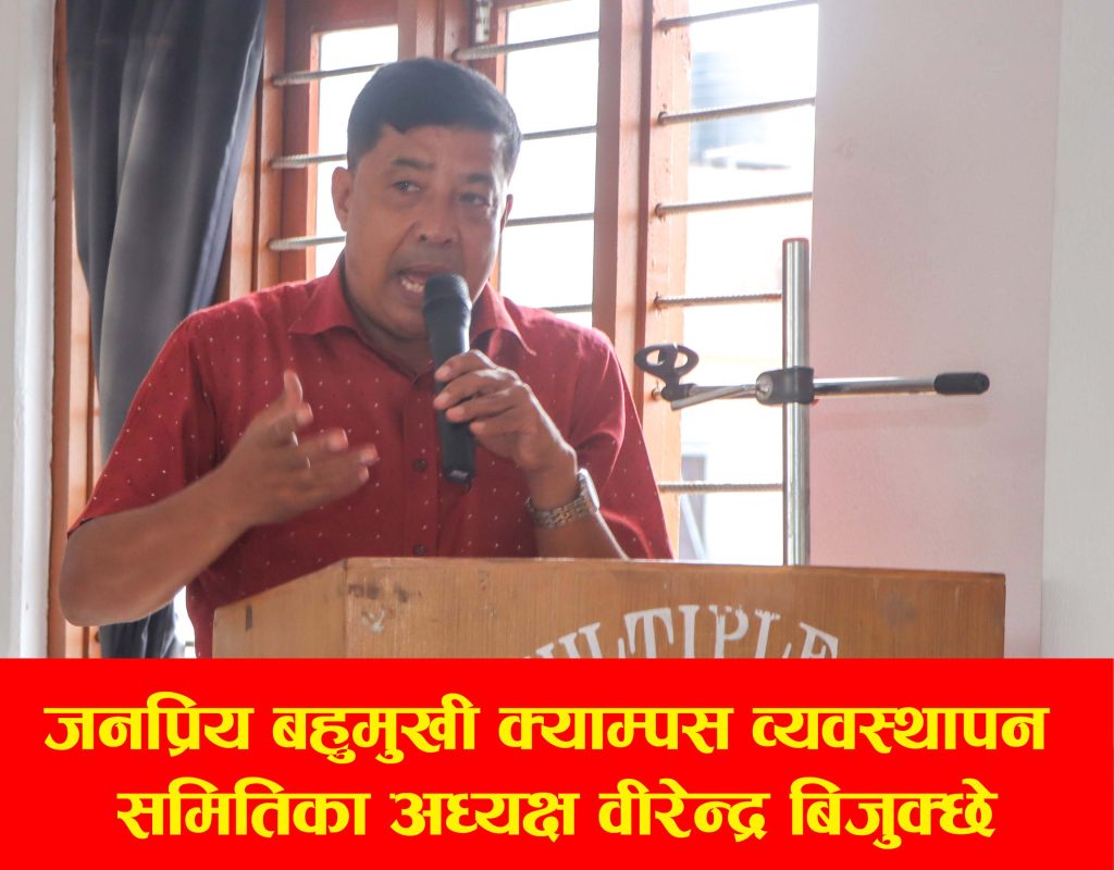 कार्यक्रममा बोल्दै प्रमुख अतिथि जनप्रिय बहुमुखी क्याम्पस व्यवस्थापन समितिका अध्यक्ष विरेन्द्र बिजुक्छेले शैक्षिक संस्थालाई गतिशील र जीवन्त बनाउन प्राध्यापक तथा कर्मचारीको भूमिका अहम् हुने बताउदै क्याम्पसलाई उज्यालो दिशातिर लैजाने एकदमै जुजारु टिम निर्माण होस् भन्दै शुभकामना दिए ।