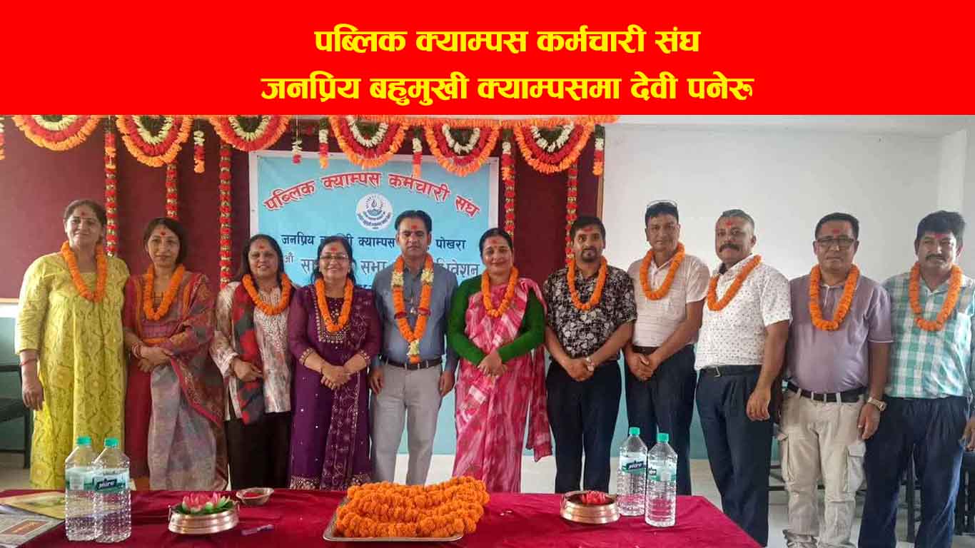 पब्लिक क्याम्पस कर्मचारी संघ जनप्रिय बहुमुखी क्याम्पस एकाइको एघारौँ साधारण सभा तथा अधिवेशन सम्पन्न भएको छ। शनिबार जनप्रिय बहुमुखी क्याम्पस पोखरामा सम्पन्न भएको अधिवेशनबाट अध्यक्ष देवी पनेरुको अध्यक्षतामा ११ सदस्य कार्य समिति सर्वसम्मत रूपमा चयन भएको हो । यसै गरी अन्य कार्यसमिति सदस्यहरुमा उपाध्यक्षमा हरी प्रसाद सापकोटा, सचिवमा लक्ष्मी कुमारी कुवँर, कोषाध्यक्षमा विमला पौडेल, सहसचिवमा कल्पना पौडेल, तथा सदस्यहरुमा हरिवहादुर वि.क, राजन्द्र श्रेष्ठ, गीता काफ्ले सुनिता पालिखे र महेन्द्रबहादुर वस्नेत रहेका छन् ।